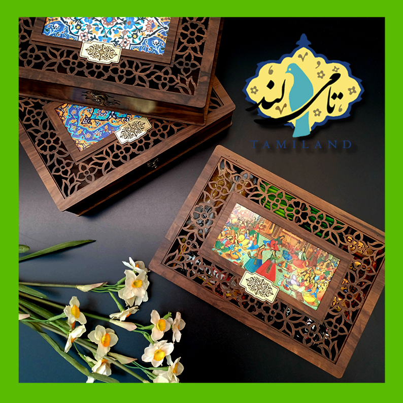 جعبه تنقلات چوبی طرح خاتم نگار
