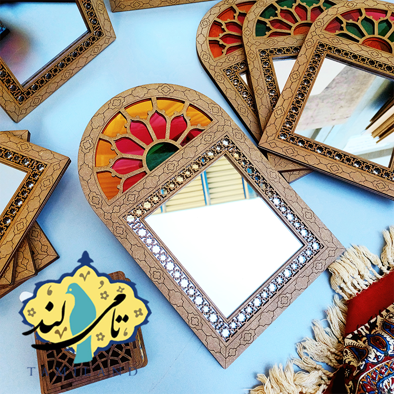 قاب آینه های ارسی ما بر اساس نیازهای سلیقه ای و اقتصادی جامعه طراحی و تولید شده اند. استفاده بهینه از مواد اولیه و در نظر گرفتن جزئیات زیباشناسانه در ساختار این محصولات ، آنها را به محصولات محبوب و زیبای ما تبدیل کرده است. رنگ بندی شیشه های رنگی این محصول ترکیب رنگ های سبز، زرد و قرمز یا ترکیب رنگهای آبی،زرد و قرمز بوده و به صورت اتفاقی در سبد خرید مشتری قرار می گیرد.